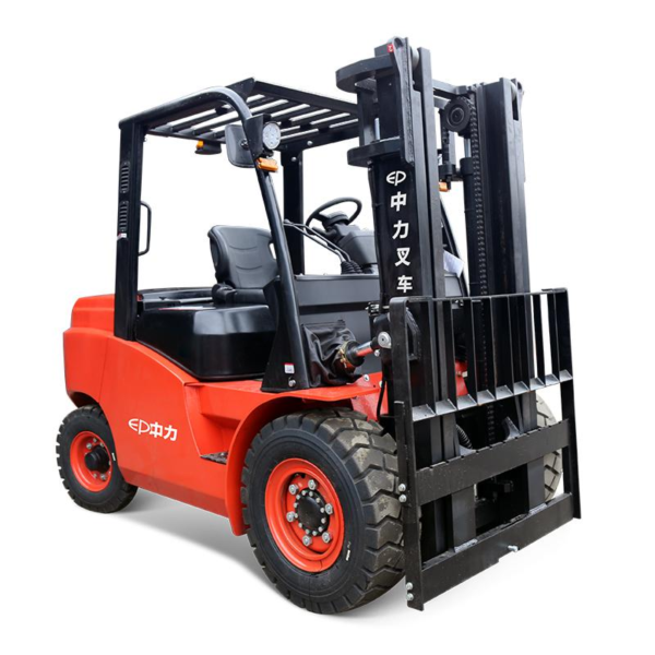 – Xe nâng 5 tấn EP có Khung nâng có tầm quan sát rộng. Kiên cố, đáng tin cậy với chức năng đệm thả hàng hóa.